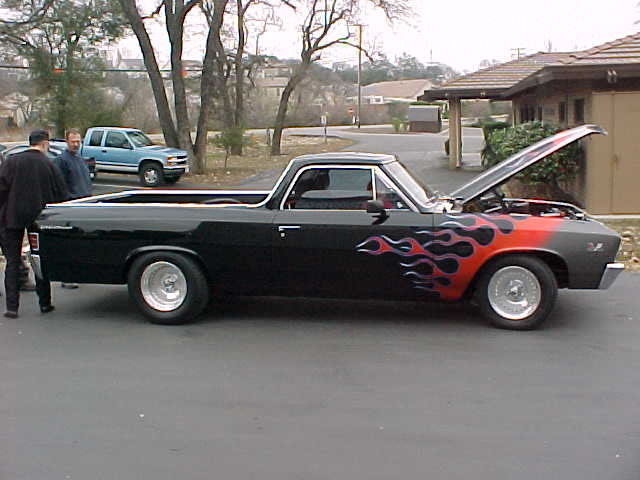 My car is a 1967 El camino with a 30 over 396 C.I. Chevrolet with a 12 bolt 411 poise rear end, Turbo automatic, 2800 stall speed converter, Lakewood ladder bars, Recaro bucket seat's and much more.